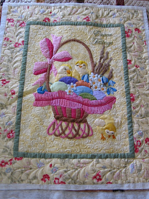 Here is a little wall hanging I did for a client last year. Searching through my pictures for an Easter related quilt. This is it. I did a lot of freehand quilting on this and it was so much fun to quilt those chicks.